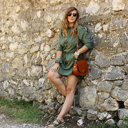 iskombinovala ovu dnevnu, kosulja-haljinu na zakopcavanje sa maslinasto zelenim